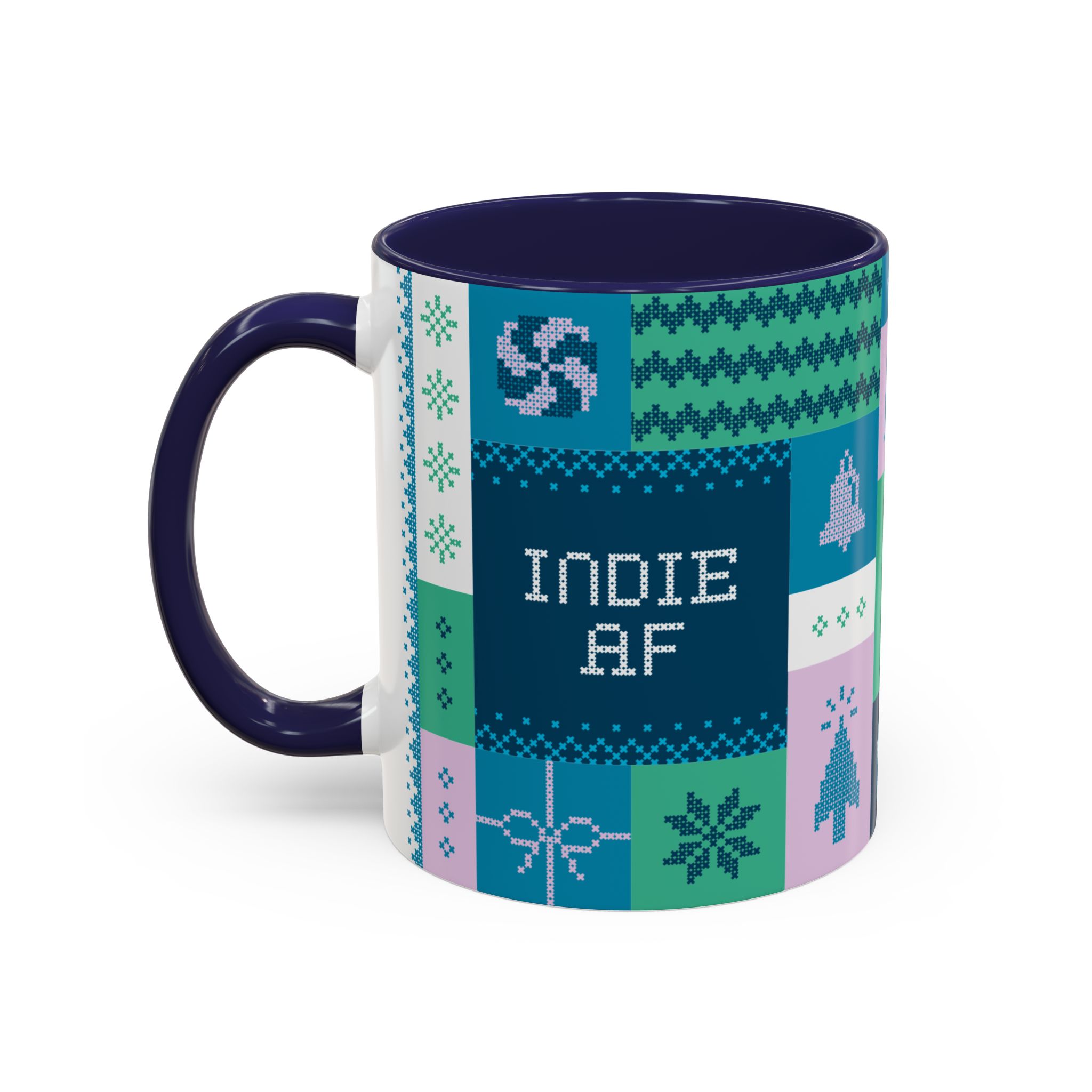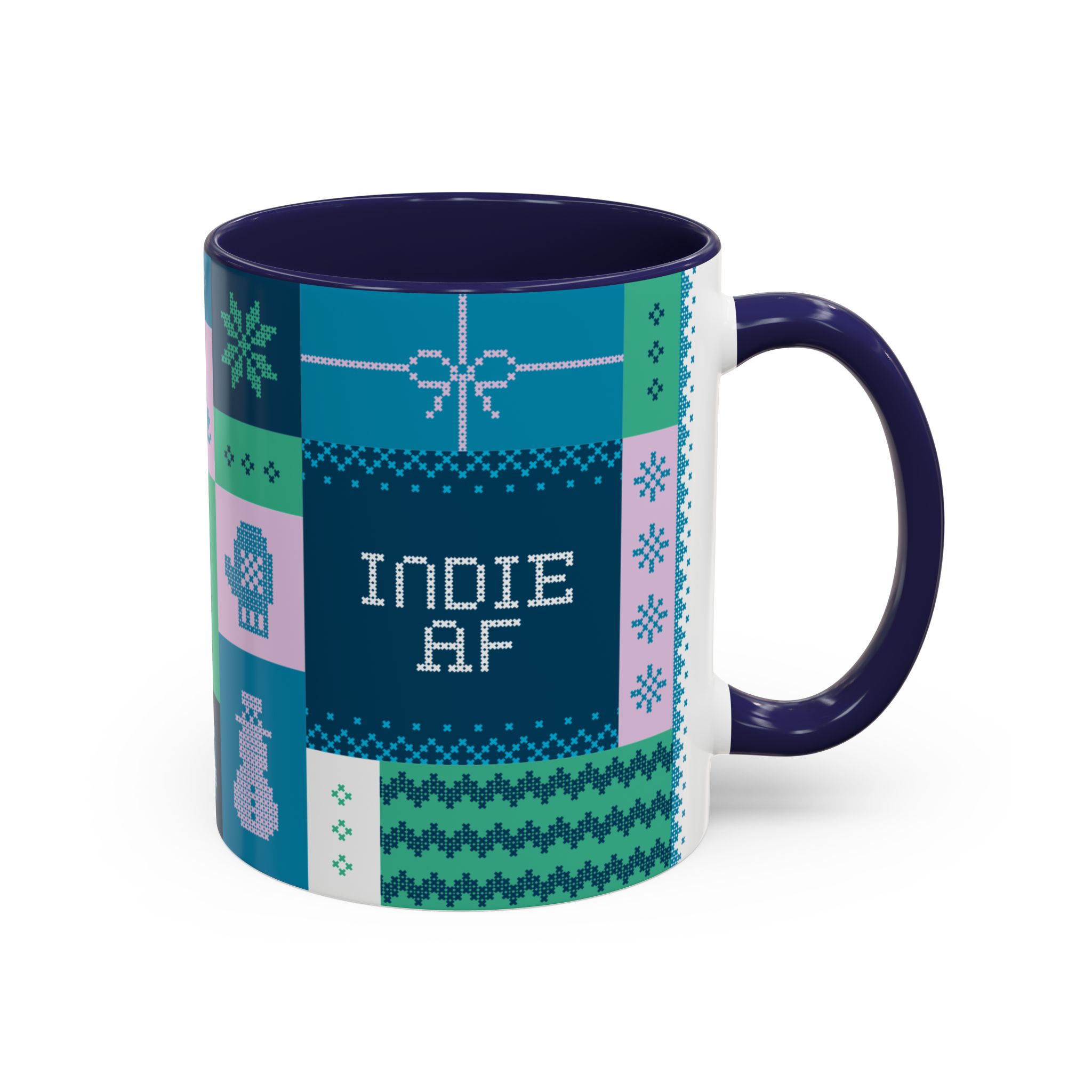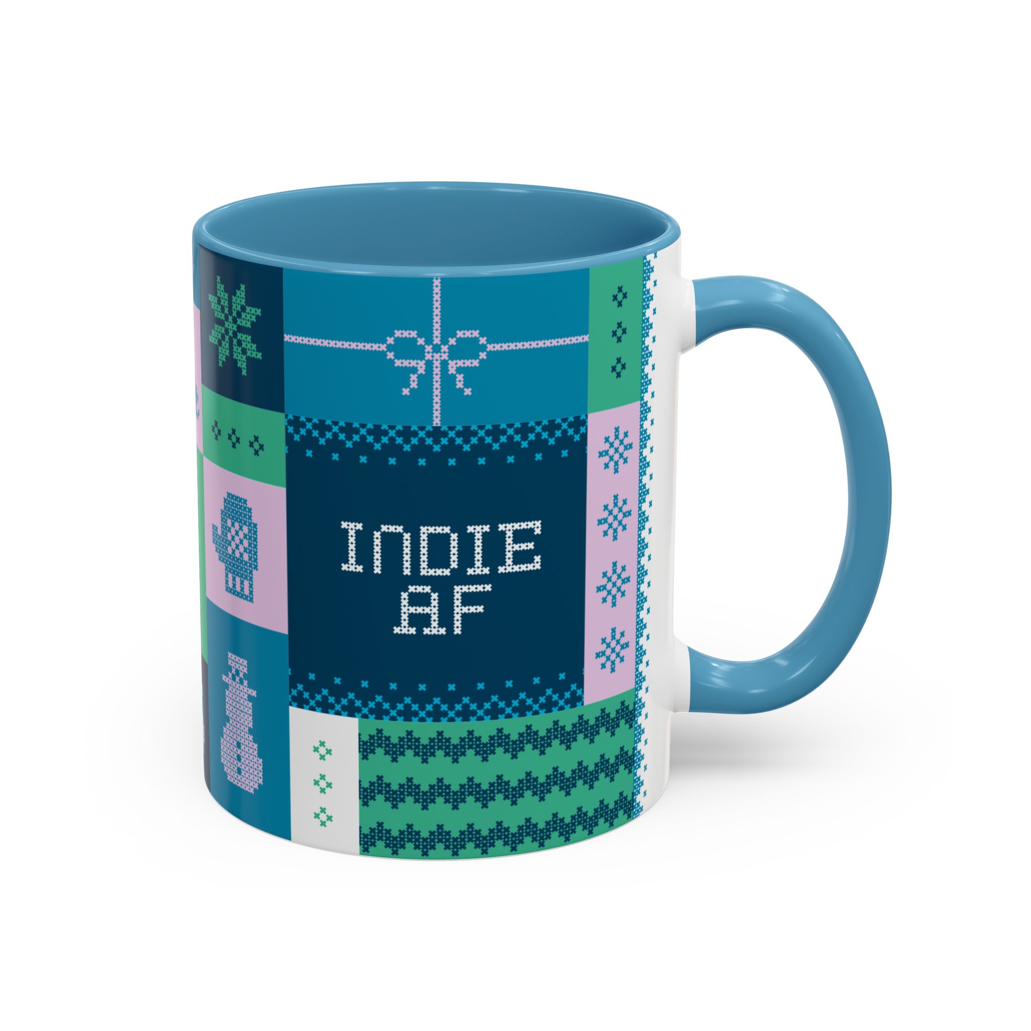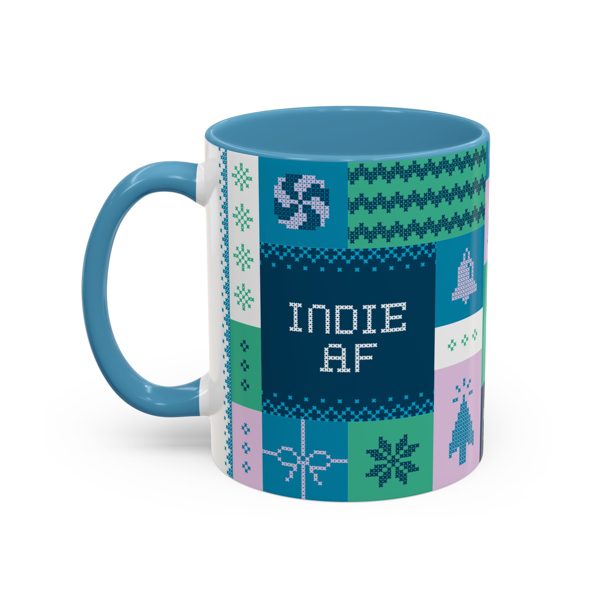 This 11oz mug in blue features a beautiful holiday pattern designed by Grown for people who’ve reclaimed December from the clutches of corporate celebration coordinators.