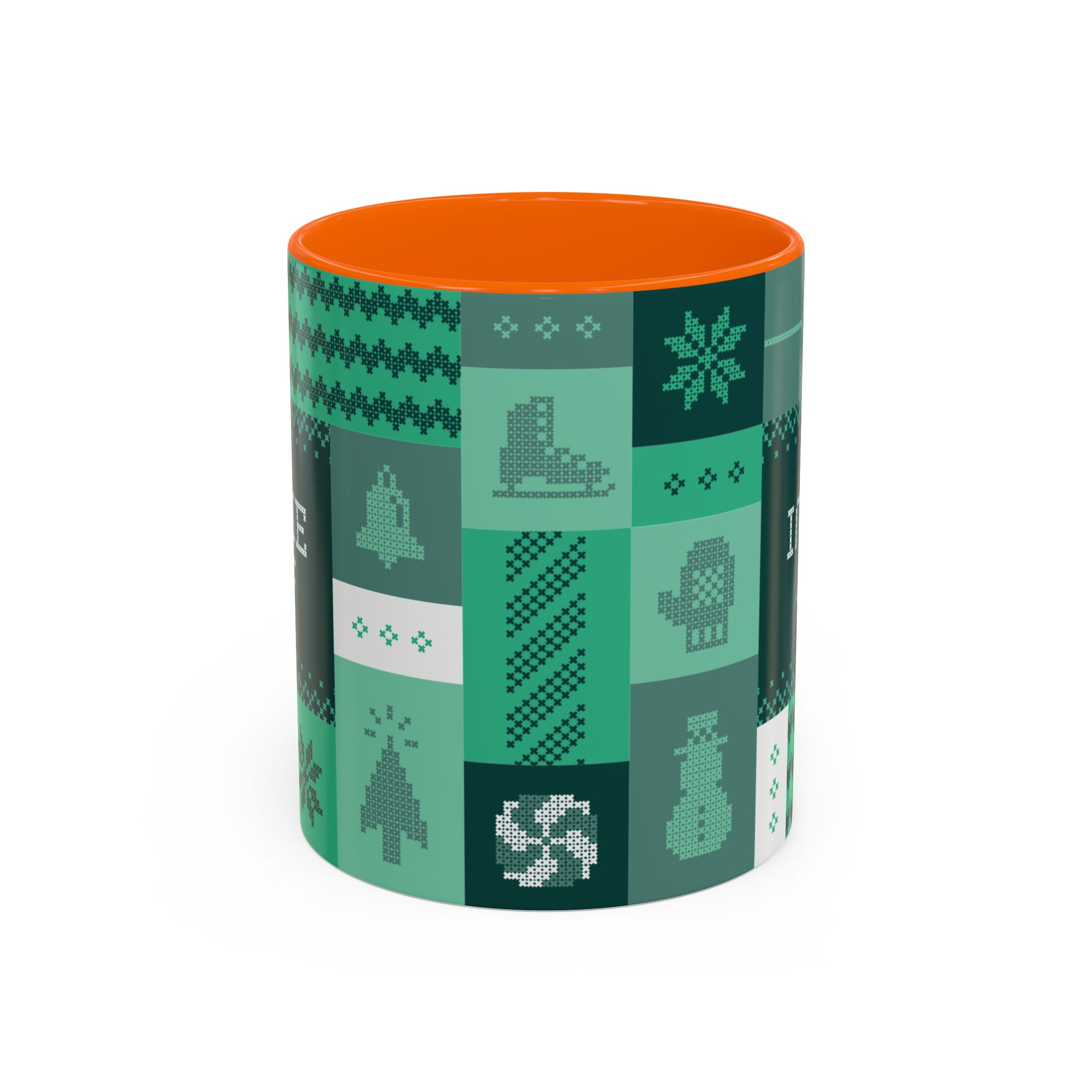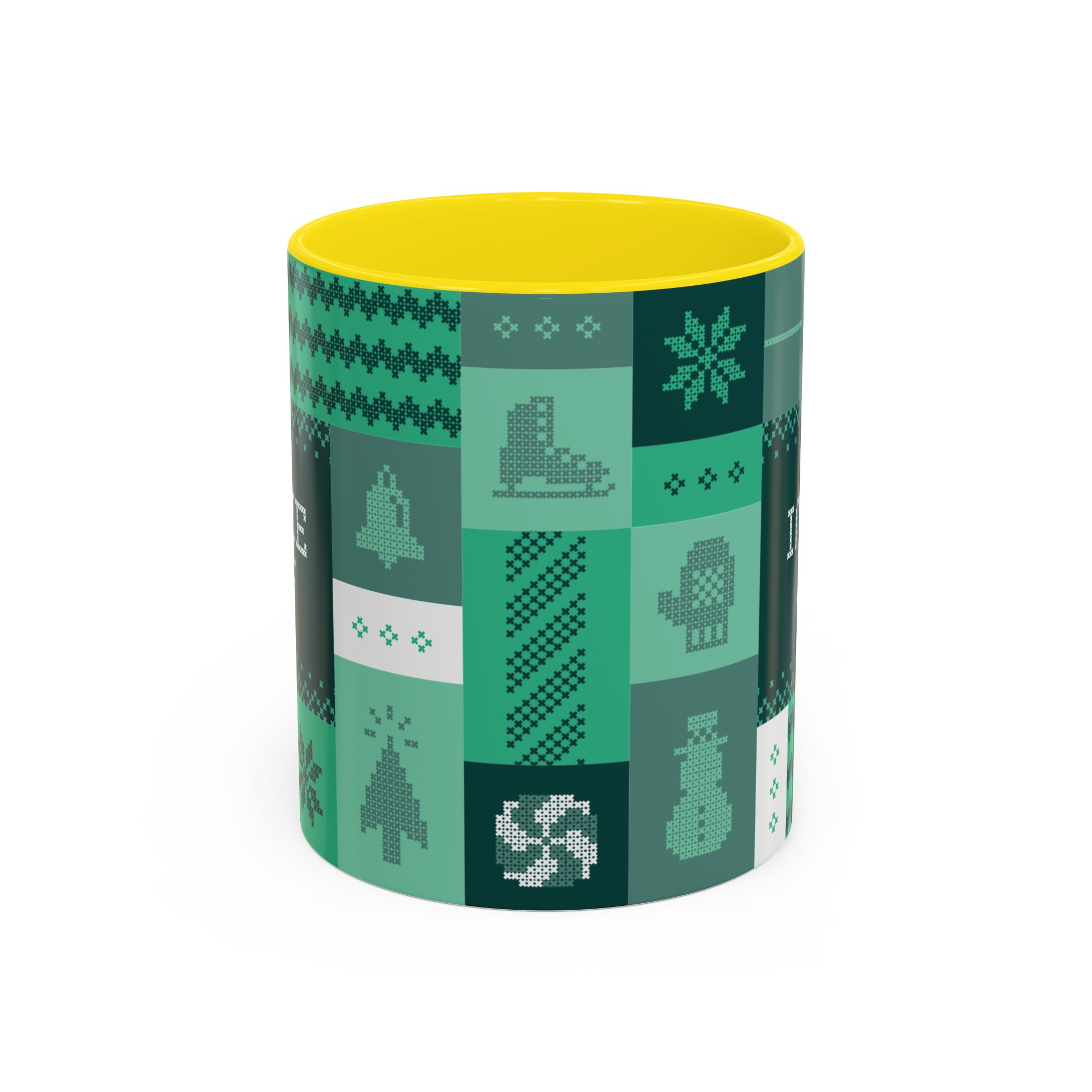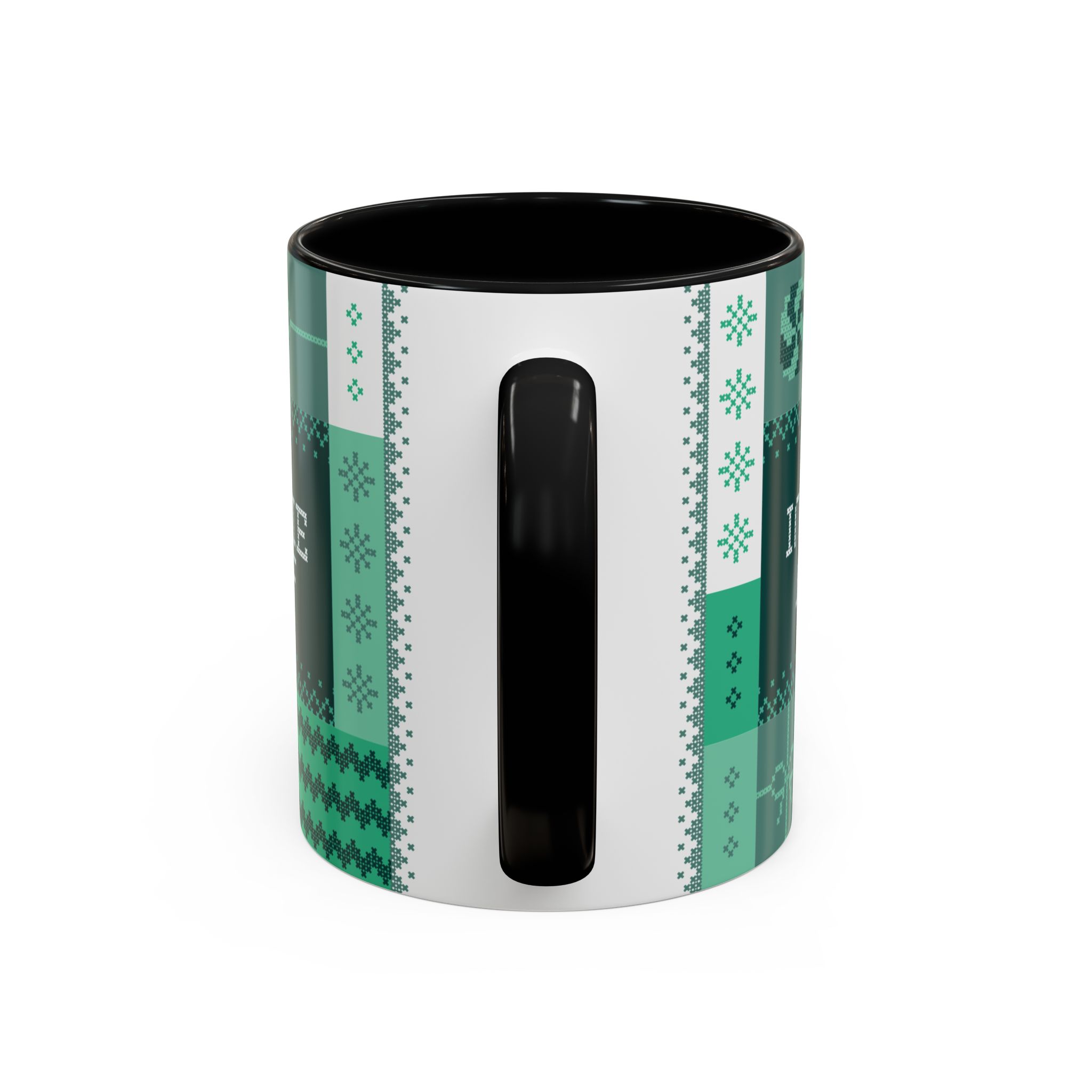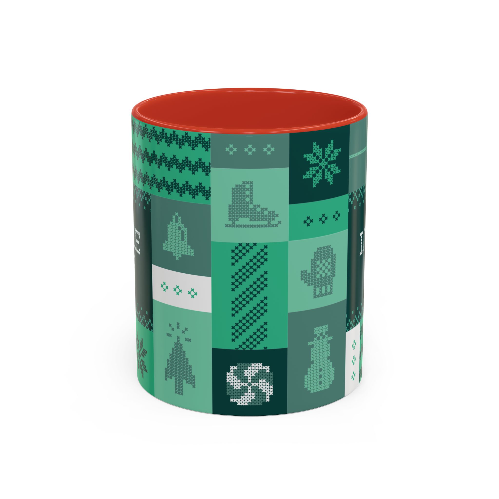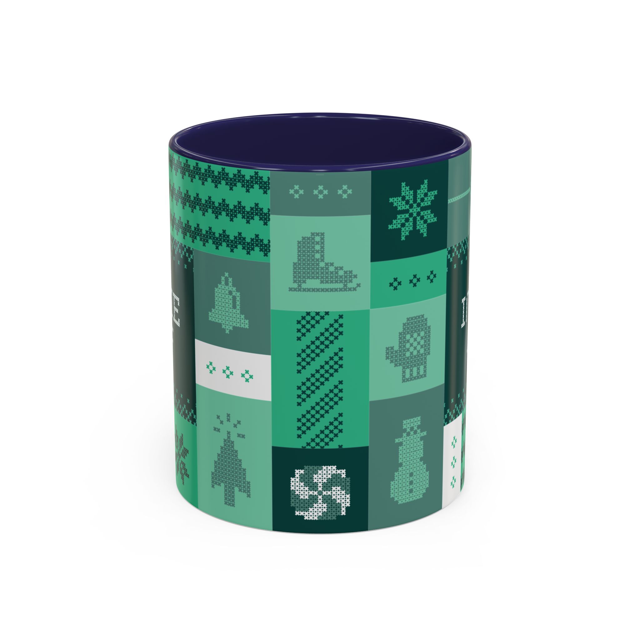 This 11oz mug in green features a beautiful holiday pattern designed by Grown, celebrating the season without the strategic planning committee it usually requires in corporate settings.